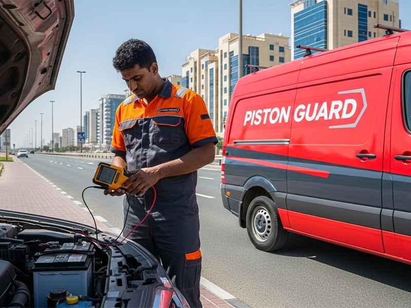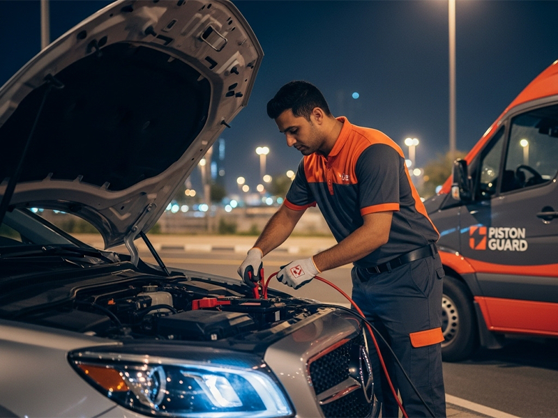 Your car won’t wait—and neither should you. At Piston Guard, we offer battery replacement and jump start services across Dubai, Sharjah, Ajman, Abu Dhabi, and Ras Al Khaimah. Available day or night, our mobile team gets you back on the road in 30 minutes or less.